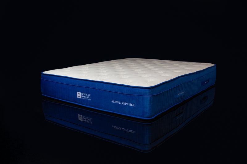Die Alpine Zephyr fängt die belebende Essenz alpiner Winde ein, mit einem vom Wind inspirierten Muster und kräftigen blauen Kanten. Lagen aus VISCOGEL und WHITE FELT, die für Weichheit und kühle Ruhe in Kombination mit der festungsartigen Stütztechnologie EDGE WEGDE sorgen, damit Sie tiefer schlafen und erfrischt aufwachen.